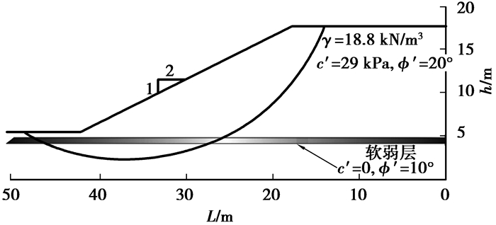 图 2 含软弱层边坡破坏模式 Fig. 2 Slope with weak layer failure mechanism |