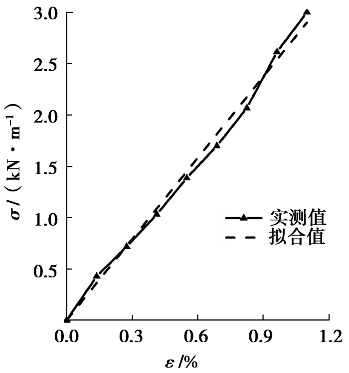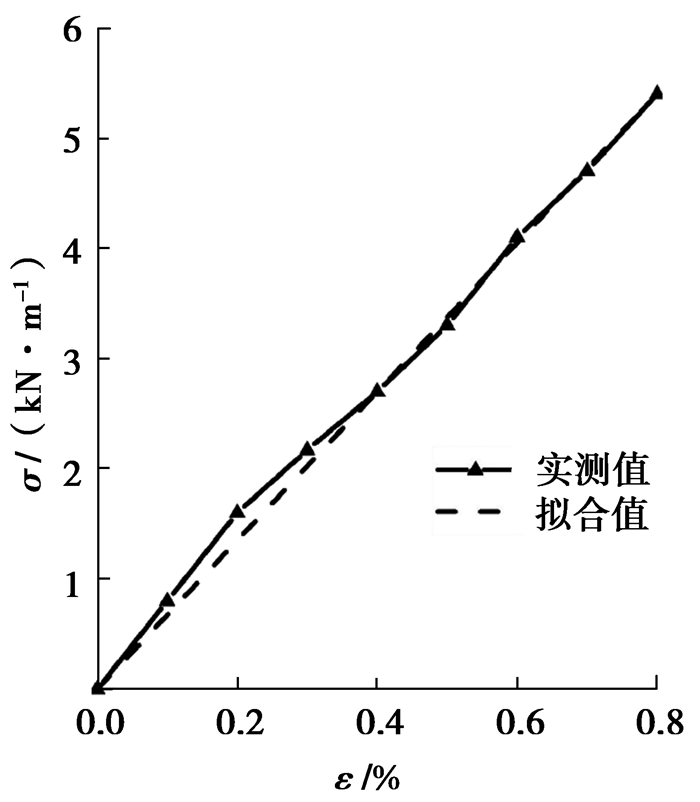 图 8 筋材的应力应变曲线 Fig. 8 Stress-strain curve of reinforcement |