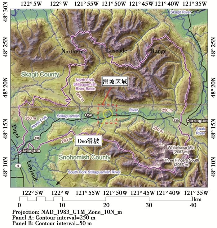 图 2 Oso滑坡附近地形 Fig. 2 landform near the Oso landslide |