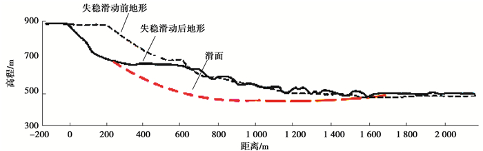 图 4 边坡失稳前后剖面图 Fig. 4 Profile map before and after the slope failure |