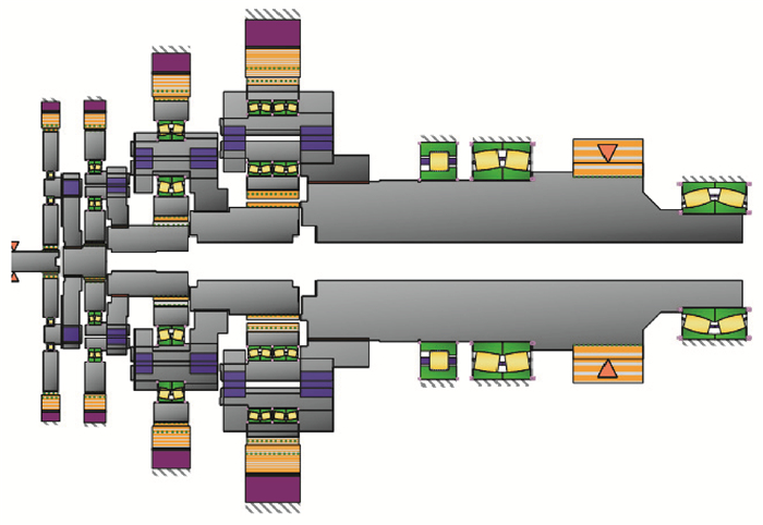由表 1中提升齿轮箱的基本参数在MASTA中建立传动系统分析模型如图 3所示。基于此模型进行以重合度为优化目标的宏观参数优化和啮合特性分析。
