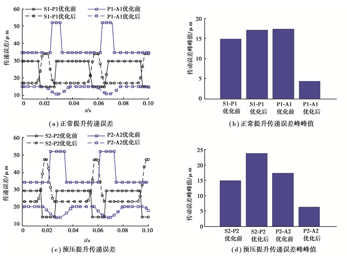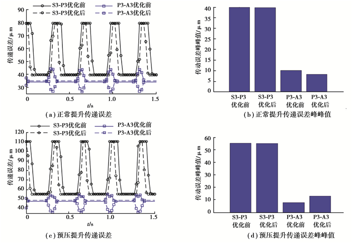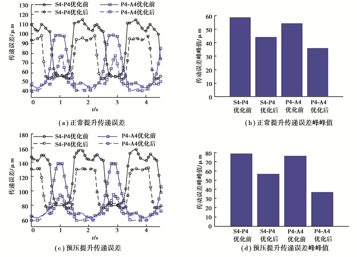 2) 正常提升和预压提升两种工况下,优化后,各齿轮副和4级NGW行星传动传递误差峰峰值总体上减小。