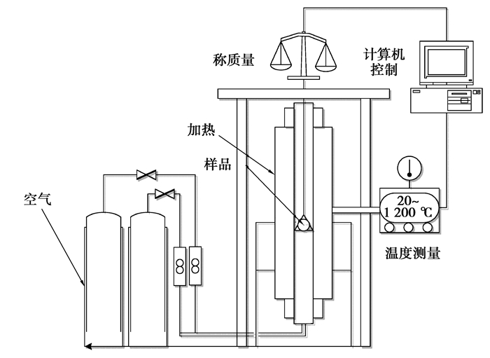 本次研究中所用的常规干燥实验系统组成如图 1所示,该系统由样品承载装置、样品加热系统、样品质量测量系统、温度控制系统和计算机控制系统等部分组成。通过电阻丝将空气加热,热空气经热风口以1 m/s速率进入测试腔体,使腔体内的温度升高,对原料进行干燥。在干燥酸溶性钛渣的实验中,通过控制不同的空气温度来研究不同质量和不同初始含水量酸溶性钛渣的干燥特性。