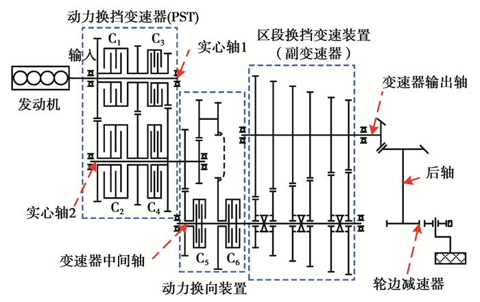 图 1 动力换挡变速箱基本结构图 Fig. 1 Basic structure of the power shift gearbox |