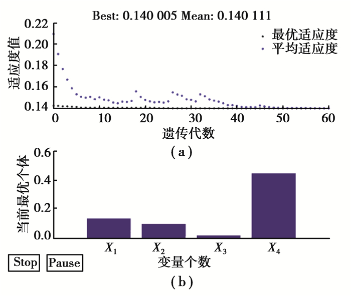 | $ \left\{ \begin{array}{l} \min \;F\left( X \right) = 0.547 \cdot \frac{{\Delta {\omega _{\rm{t}}}}}{{\Delta {\omega _{{\rm{range}}}}}} + 0.295 \cdot \frac{j}{{{j_{{\rm{range}}}}}} + 0.099 \cdot \frac{t}{{{t_{{\rm{range}}}}}} + 0.059 \cdot \frac{W}{{{W_{{\rm{range}}}}}}, \\ X = [{X_1}, {X_2}, {X_3}, {X_4}], \\ {X_1} = {K_{\rm{P}}}, \\ {X_2} = {K_{\rm{I}}}, \\ {X_3} = {K_{\rm{D}}}, \\ {X_4} = {P_2}, \\ X_1^{\rm{L}} \le {X_1} \le X_2^{\rm{U}}。\end{array} \right. $ | (19) |
