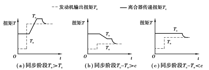 式中:Tc_a为离合器主、从动盘转速差满足条件a时离合器转矩;Te_a为条件a时刻对应的发动机转矩;ΔT为发动机输出扭矩与接合离合器传递扭矩差值;c为常数。