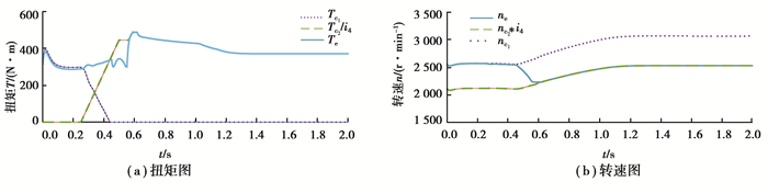图 8 升挡过程扭矩、转速结果 Fig. 8 Torque and speed results in the upshift process |