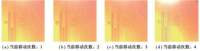 下面展示BP神经网络方案误差最大的第4组(误差达到6步),其在测量过程中相机的显示画面(如图 11所示).(a)(b)(c)为测量3处评价值时的相机图像,(d)为BP神经网络计算值处的相机图像。根据光学成像知识,当焦点对准某一物体时,不仅位于该点平面上的各点都可以看清楚,而且在此平面的上下一定厚度内,也能看得清楚。由图 11(d)可以看出其图像较为清晰。