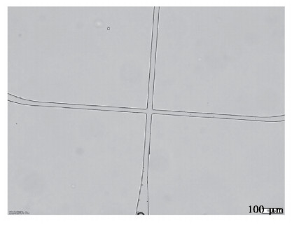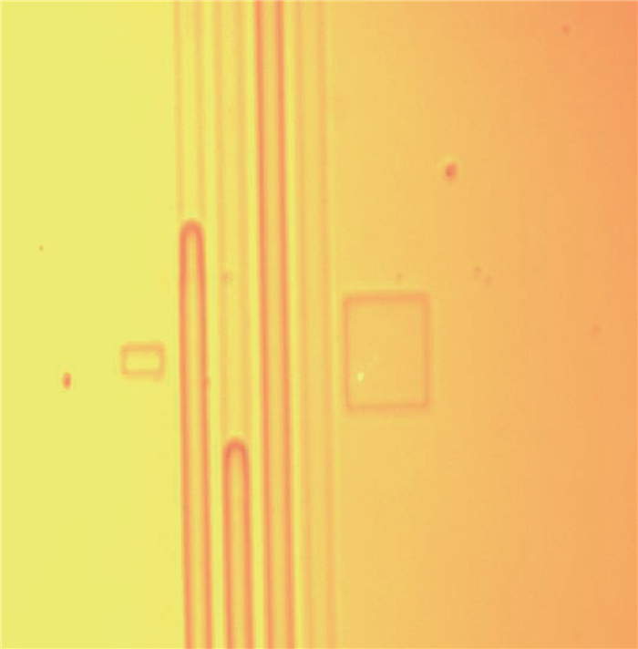图 7 实验平台所用微流控生物芯片的相机拍摄图 Fig. 7 The microfluidic biochip used in the experimental platform was photographed by a camera |