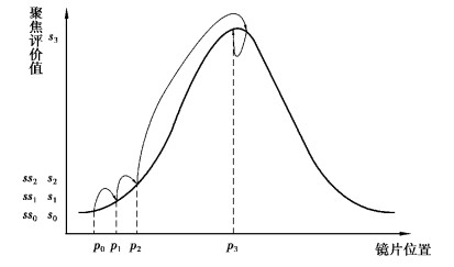 步骤4:对于每组类别,测量其聚焦函数的图像,即移动镜片(改变p),测量其聚焦函数值,并找出其峰值的位置p3,得到聚焦评价值s3。