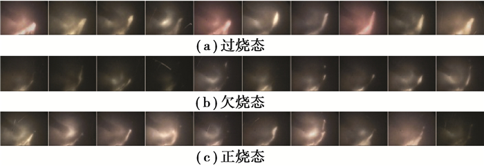 为验证基于深度迁移学习的水泥回转窑燃烧状况智能感知机制和计算方法的可行性,获取多种工况条件下某水泥厂1号窑的燃烧状况火焰图像,图像的大小为512×384。如图 3所示选取4 150幅图像,包括685幅过烧态、1 789幅欠烧态和1 676幅正烧态构建数据集合。1 000次bootstrapping方法获取平均燃烧状况的认知结果。火焰图像的燃烧状况标签由操作专家给出。