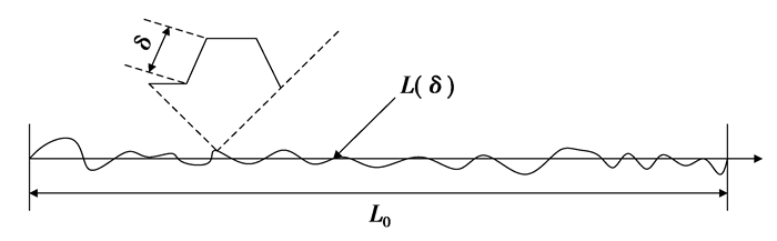 如图 1中分形裂缝形态所示,则有分形裂缝扩展实际长度L(δ)与裂缝线性扩展长度L0存在如下关系式,