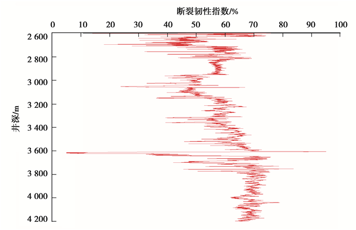 图 6 某页岩水平井断裂韧性指数剖面 Fig. 6 Horizontal well fracture toughness index profile of shale gas reservoir |