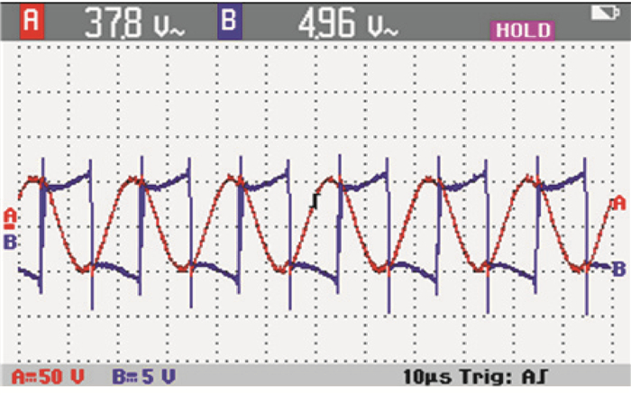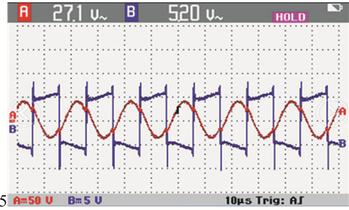 图 9 金属物为铜质散热片的波形图 Fig. 9 Waveform of MC-WPT system witha copper heat sink |