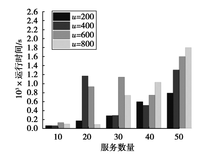 图 5 运行时间 Fig. 5 Runtime of different users numbers and services numbers |