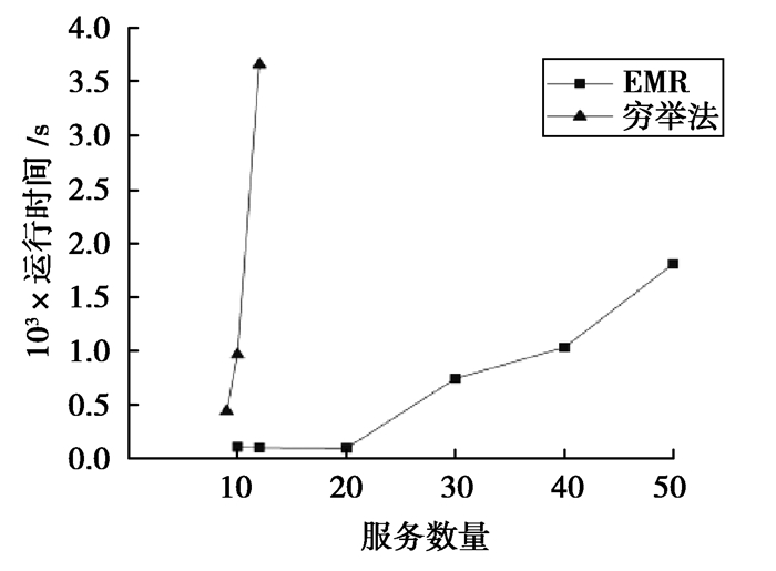 图 6 EMR和穷举法的运行时间对比 Fig. 6 Runtime comparison between EMR and Enumeration method |