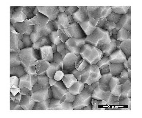 1 实验研究方法 1.1 实验原料实验选用石灰石来自湖北武汉江夏乌龙泉矿区, 化学成分见表 1。石灰石的主要成分为CaCO3, 其中含极少量的SiO2和MgO。荷兰Philips公司生产Nova400 Nano SEM型场发射扫描电镜BSED模式下石灰石晶粒排列情况见图 1。图中石灰石晶粒呈规则块状结构排列, 晶粒大小在1~4 μm, 晶粒之间紧密结合, 孔隙度接近0。