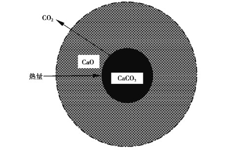 2) 热量由CaO层向内传递, 至未反应CaCO3表面;