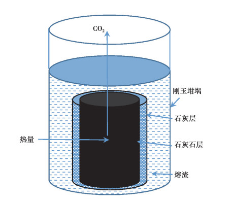 图 4 石灰石在转炉渣中分解模型 Fig. 4 Model oflimestone decompositionin BOFslag |