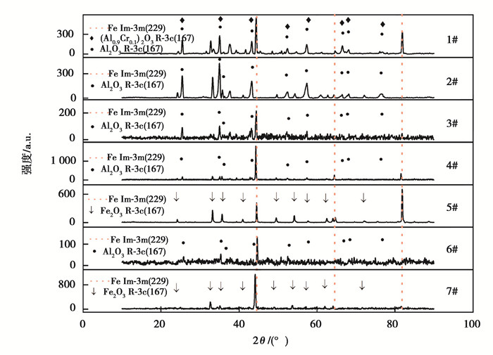 图 8 Fe-Al-Cr合金表面氧化产物XRD分析 Fig. 8 XRD analysis of oxidation products of Fe-Al-Cr alloy surfaces |