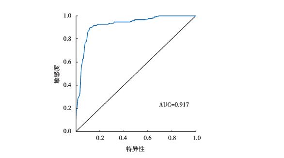 图 7 神经网络模型ROC值, AUC值(曲线下面积) Fig. 7 The ROC value and AUC value (the area underthecurve) ofneural network model |