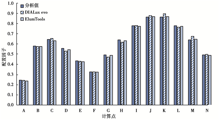 4) 按CIE 171:2006要求,为排除其他因素导致光线损失对实验结果造成的影响[18],2款软件模拟的维护系数均设置为1.0。