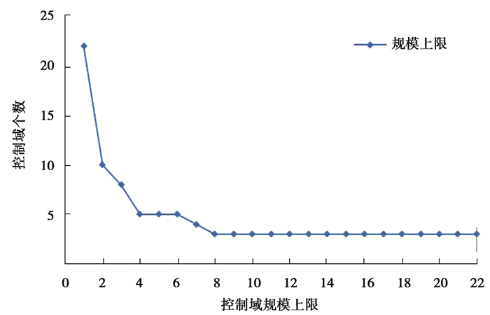 控制域的规模上限ηU会影响控制域划分个数,从图 2可知ηU小于4时,划分较多的控制域;当大于8时,控制域个数再无变化,说明控制域划分恒定,不随ηU值变化。