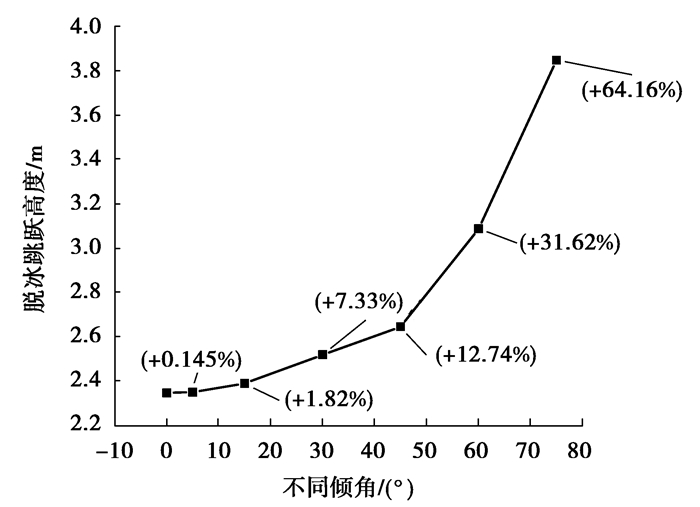 图 7 不同倾角高差下的脱冰跳跃最大高度 Fig. 7 Maximum height at different elevation |