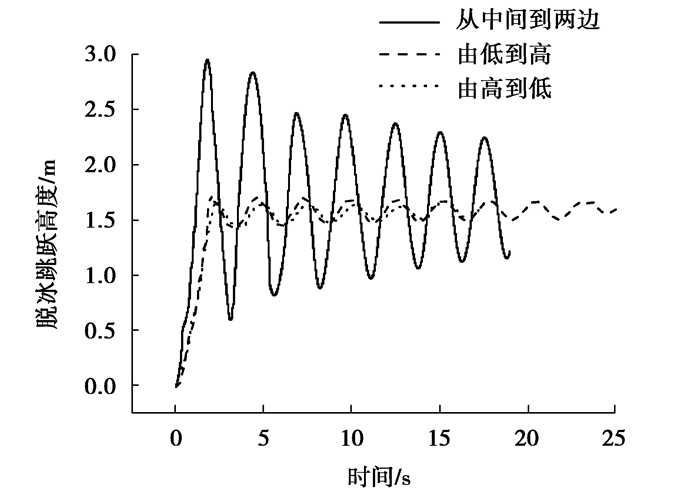 4) 从中间到两边脱冰方式为最不利情况,实验案例表明,它们比从一端到另一端的脱冰方式的脱冰跳跃最大高度增大了40%。