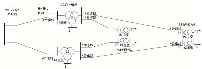 图 1 改造工程所影响的局部电网 Fig. 1 The local network influenced by the reconstruction project |