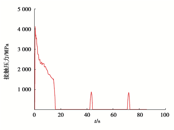 图 5 硅颗粒间接触应力在3次充电放电过程的变化 Fig. 5 Variation of contact stress between silicon particles during three times of charge and discharge |