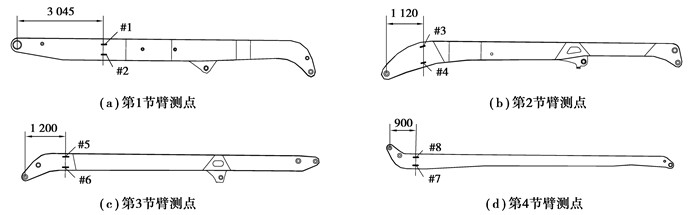 图 12 臂架应力测点布置示意图 Fig. 12 Positions of stress test points in booms |