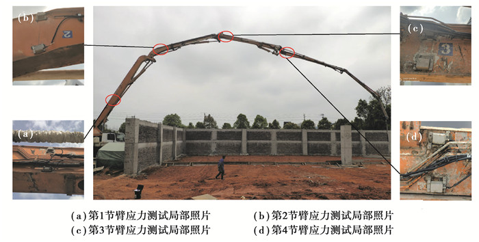 3.1.2 位移与动应力测试位移与动应力测试主要是测量臂架末端位移量与臂架动应力,对这两个项目进行测试时,需搭建位移与动应力测试平台。