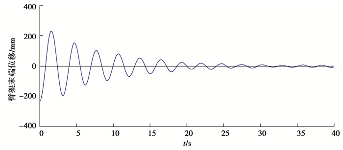 图 15 停机时臂架末端振位移幅值衰减曲线情况 Fig. 15 Vibration displacement amplitude of boom tip in stopping period |