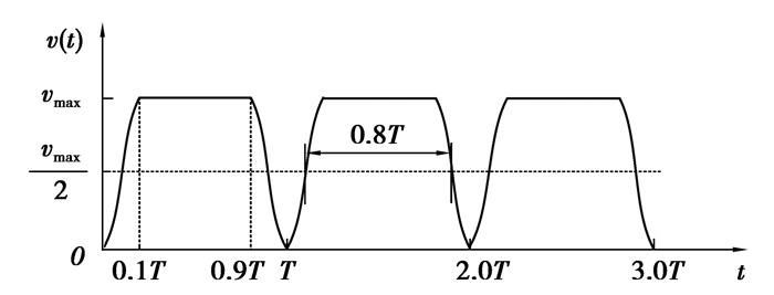 | $ v(t)=\left\{\begin{array}{cc} \frac{v_{\max }}{2}\left\{\sin \left[\frac{10 {\rm{ \mathsf{ π} }}}{T}(t-0.05 T)\right]+1\right\} & (0.0,0.1 T) \cup(0.9 T, T), \\ v_{\max } & (0.1 T, 0.9 T) 。\end{array}\right. $ | (1) |