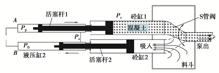 图 9 混凝土泵工作原理示意图 Fig. 9 Schematic diagram of concrete pump working principle |