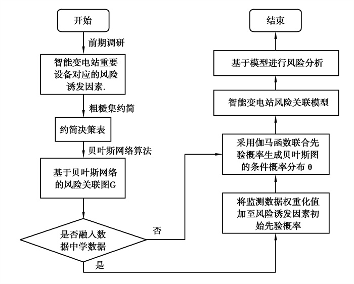 基于贝叶斯网络的风险关联模型将贝叶斯网络与粗糙理论集相结合,基于专家群决策方法来确定智能变电站的风险诱发因素及设备风险,建立决策表, 利用粗糙集提取最佳属性约简组合; 利用贝叶斯网络技术构建风险关联关系图, 采用专家知识与伽玛分布函数联合确定贝叶斯图的条件概率分布, 并通过融入监测数据的方式对模型进行更新[13-14]。