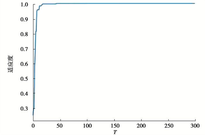 图 2 最优个体适应度值的曲线 Fig. 2 Curve of optimal individual fitness value |