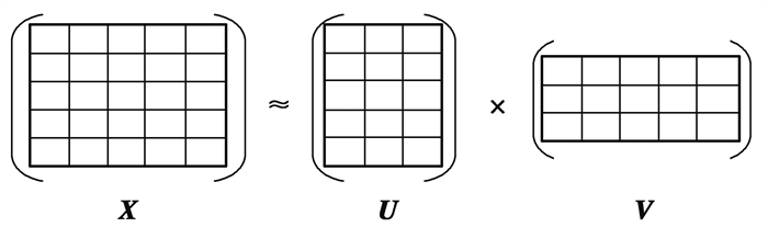 | $ \min \left\|\boldsymbol{X}-\boldsymbol{U} \boldsymbol{V}^{\mathrm{T}}\right\|_{F}^{2} \text {, s.t. } \boldsymbol{U} \geqslant 0, \boldsymbol{V} \geqslant 0 \text {, } $ | (2) |