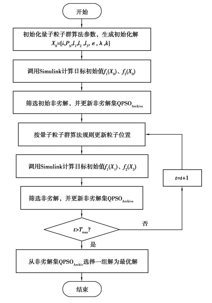 图 3 量子粒子群算法优化流程图 Fig. 3 Flow chart of quantum particle swarm optimization |
