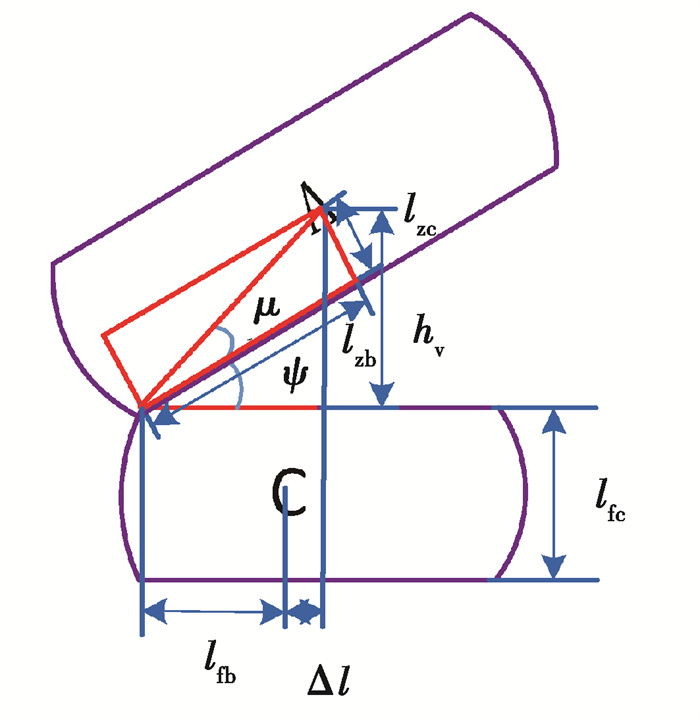 | $ h_{\mathrm{v}}=\sqrt{\left(l_{\mathrm{zc}}\right)^2+\left(l_{\mathrm{zb}}\right)^2} \sin (\mu+\psi), $ | (16) |