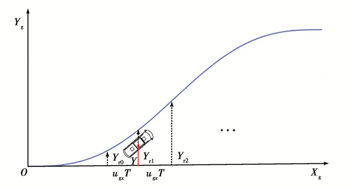 图 6 实时变道轨迹曲线预瞄 Fig. 6 Curve preview of real-time lane changing trajectory |