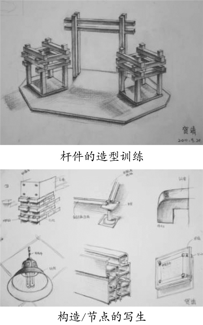 图 1 融贯教学中建筑美术课的课题训练作业 |