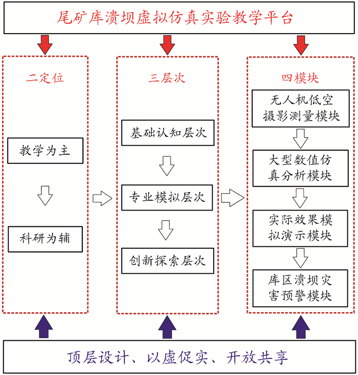 图 1 尾矿库溃坝虚拟仿真实验教学方案 |