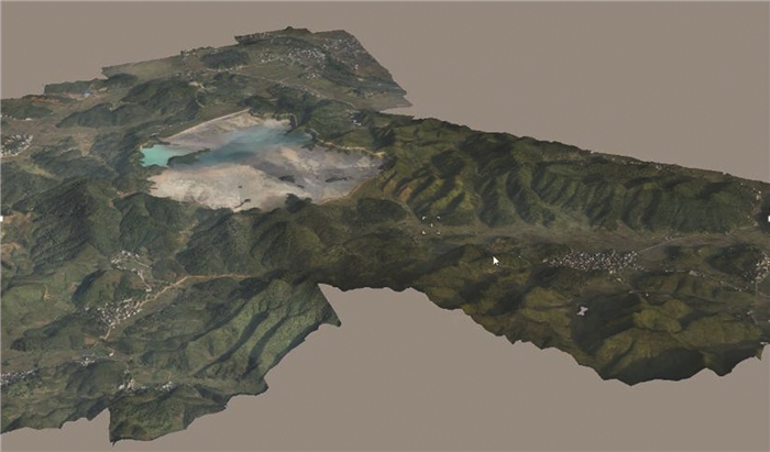 图 2 基于无人机航测的尾矿库三维实景模型 |