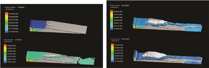 图 3 尾矿库漫顶溃坝过程模拟 |